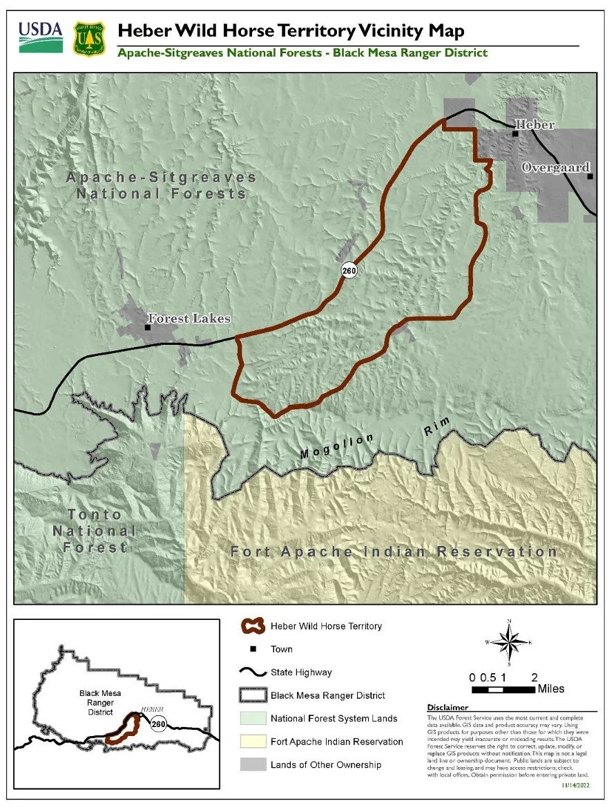 The Heber Wild Horse Territory encompasses approximately 20,000 acres near Heber-Overgaard in Navajo County, Arizona. While smaller than many Herd Management Areas overseen by the Bureau of Land Management, it is home to a long-established and culturally significant population of wild horses.