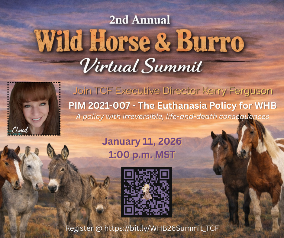 The summit is FREE to the public! Videos of the presentations will also be uploaded to our YouTube channel. The goal is to educate as many people as possible regarding the fight to protect wild horse and burro freedom and the challenges they face in 2026.